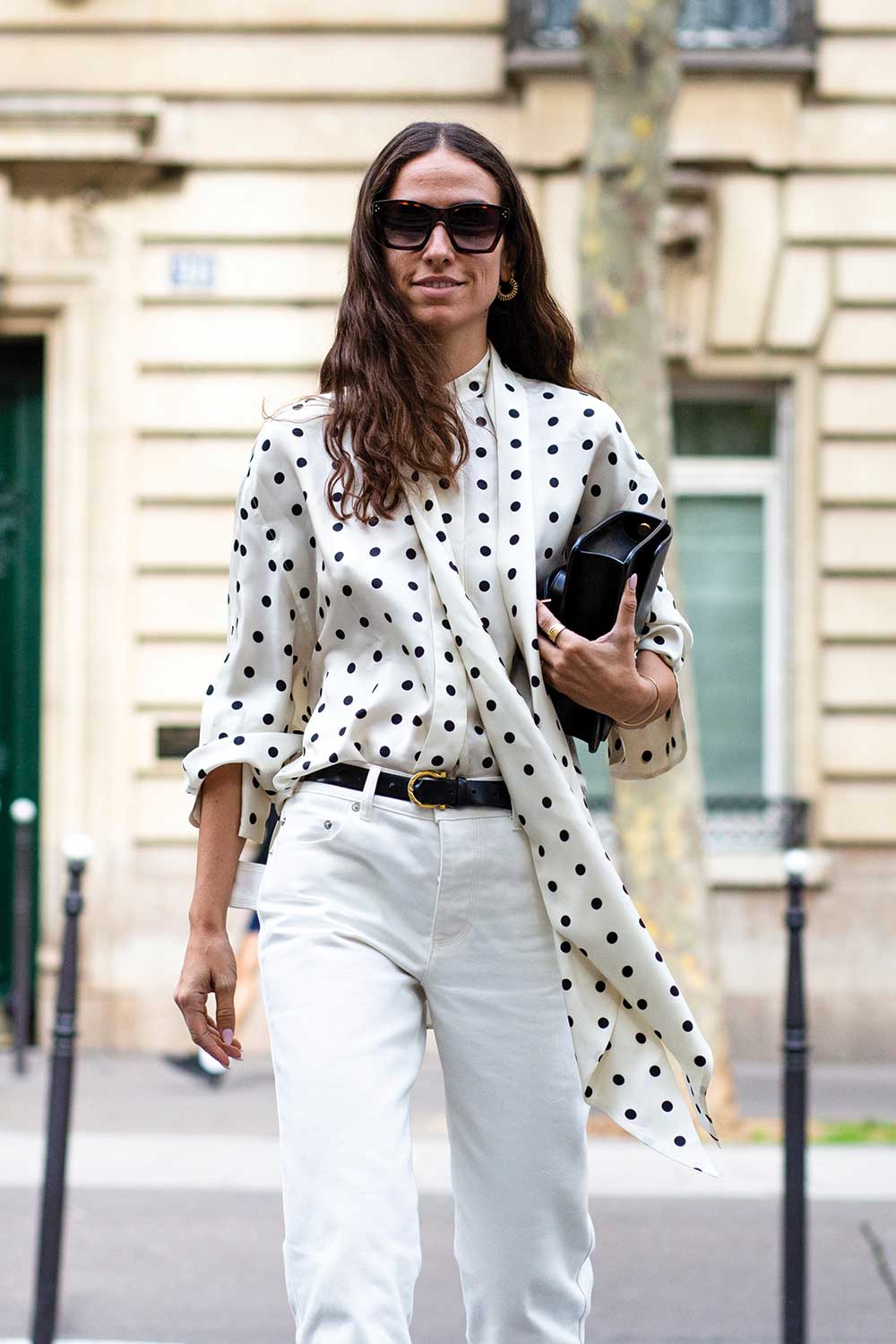 Stylist Catherine Condell admires how Emmanuelle Alt, editor of Paris Vogue, pairs white blazers with dark trousers – the only accessory needed is shiny hair. It’s a quick way to re-energise, not only your demeanour, but dark year-round dresses, tops and bottoms, without making a major investment.