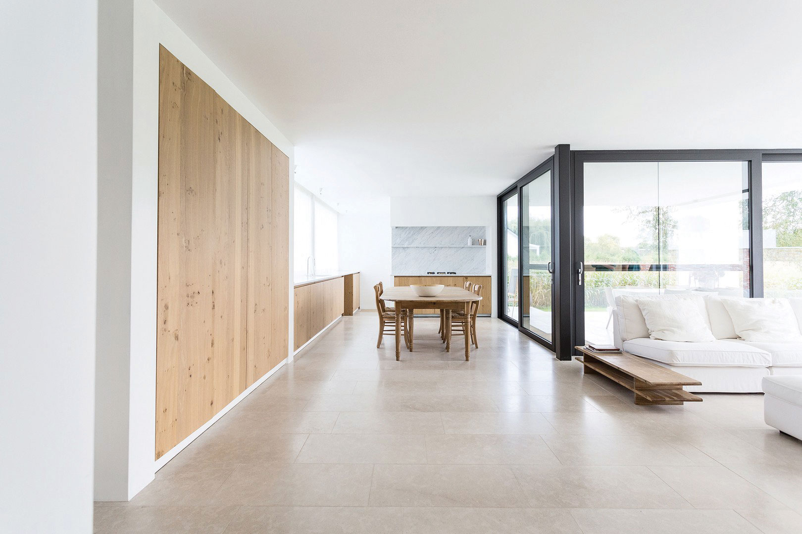 For open-plan living, natural-looking, restful surfaces such as classic limestone are a wise long-term investment. Also on trend are larger indoor/outdoor 20mm thick porcelain tiles (Out 2.0 by Refin, above) which are available in a range of finishes – from wood-like to metallic – and can be continued onto decking for a seamless transition outdoors.