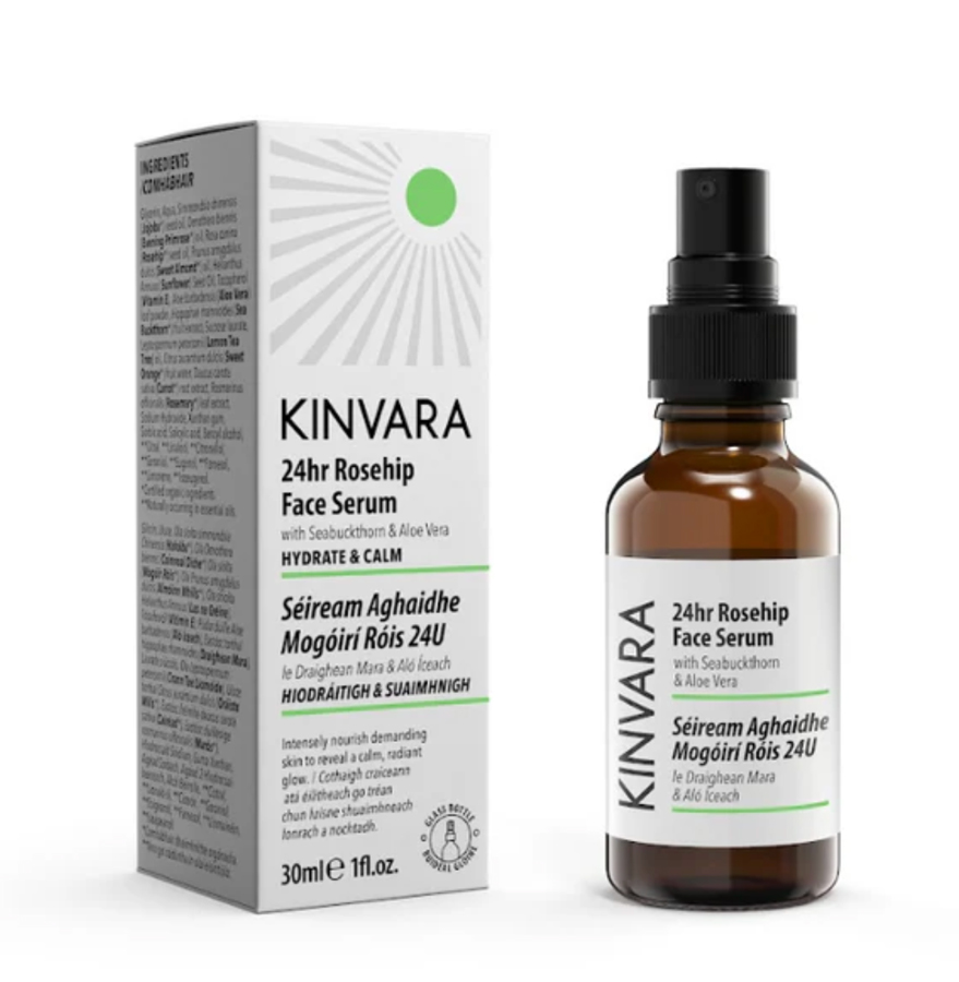 A second standout is the Kinvara 24hr Rosehip Face Serum, €36.95.