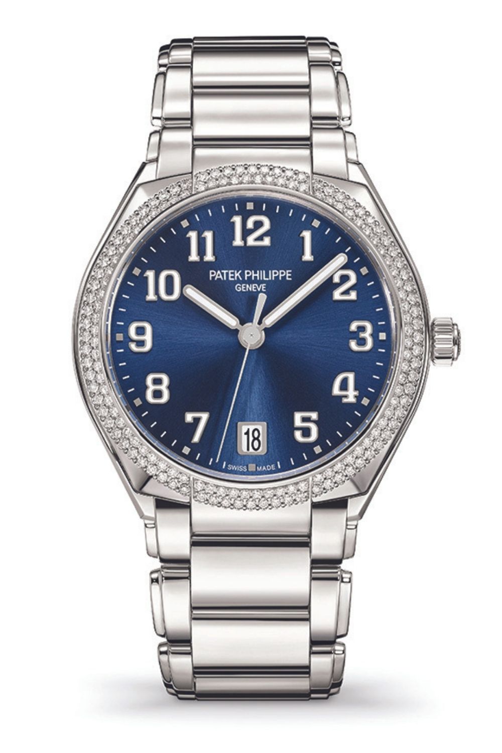 Blue Twenty 4 automatic sunburst dial steel watch with diamonds, Patek Philippe; www.weirandsons.ie.