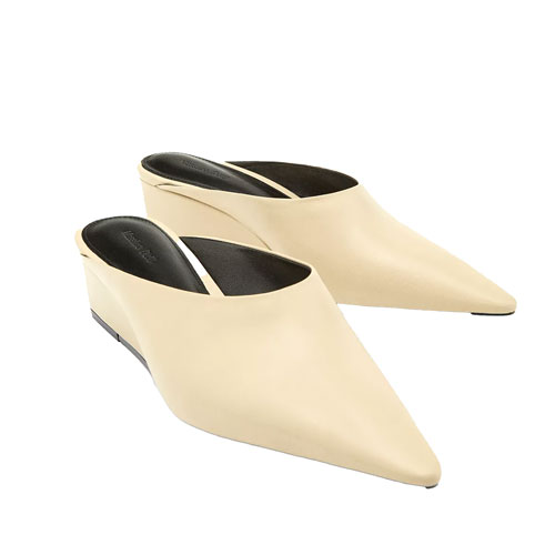 Cream leather wedge mules, €130