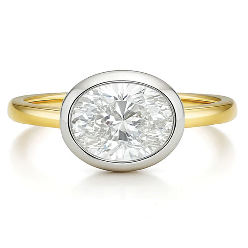 18ct gold east-west bezel diamond ring, POA