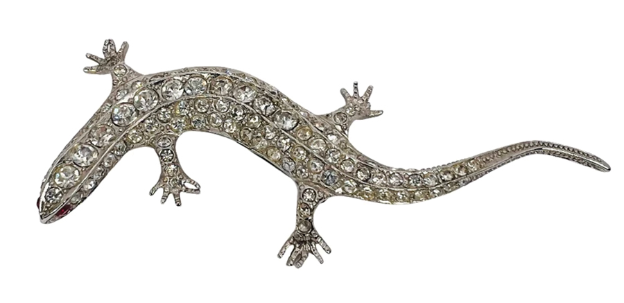 Silver-tone 1980s rhinestone lizard brooch, Butler & Wilson, €200; www.newbridgesilverware.com.