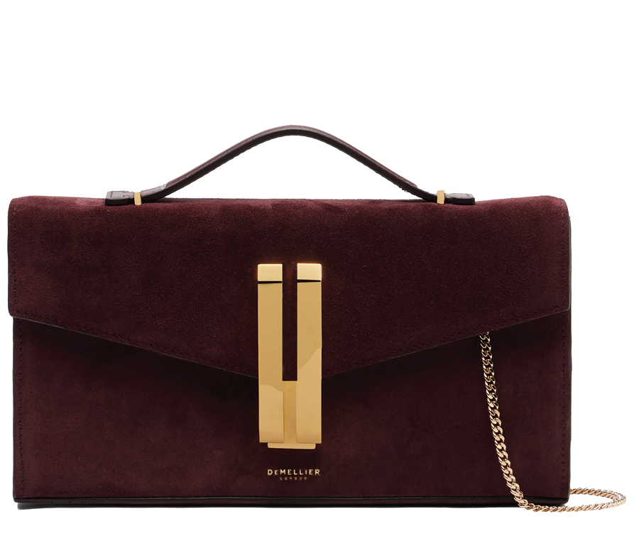 Burgundy Vancouver suede bag, Demellier, €455, at Brown Thomas.