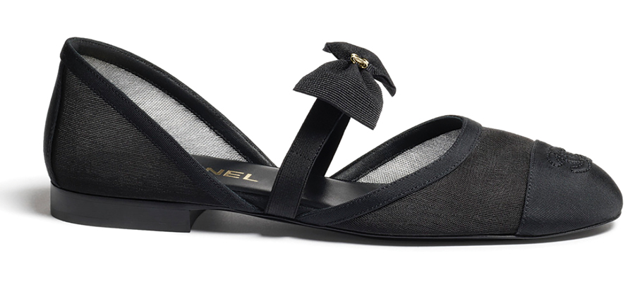 Black mesh and grosgrain Mary Janes, Chanel, €1,240, at Brown Thomas.
