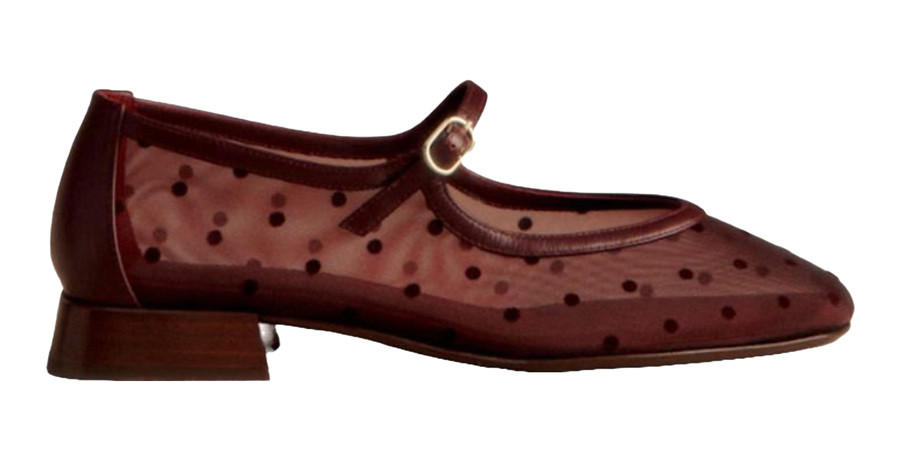 Purple fishnet Aubane Low Babies shoes, €165; www.sezane.com.