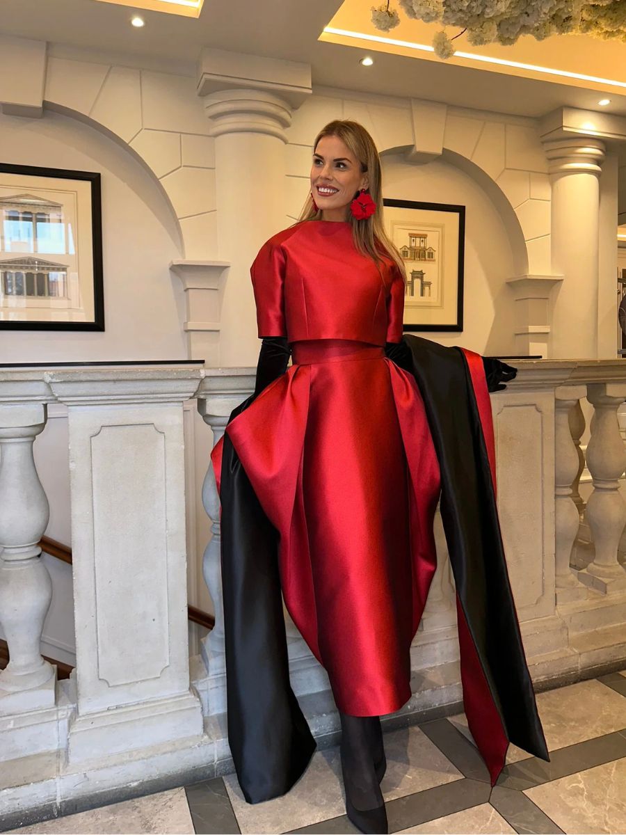 Red Dhalia draped taffeta skirt, €695; www.andtate.com.