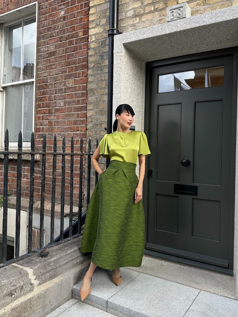 Green Davina cotton bell-shaped skirt, €695; www.andtate.com.
