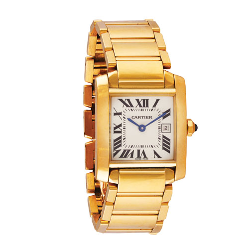 18ct gold Tank Francaise watch, Cartier, estimate €7,000-€8,000, at Adams Auctioneers (auction May 12 at 4pm)