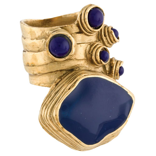 Gold-tone Arty Dots blue enamel ring, €285, at The 59 Collective