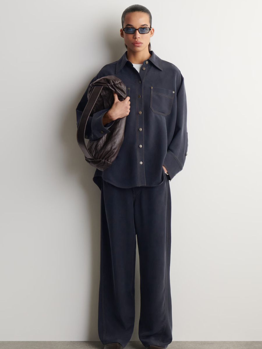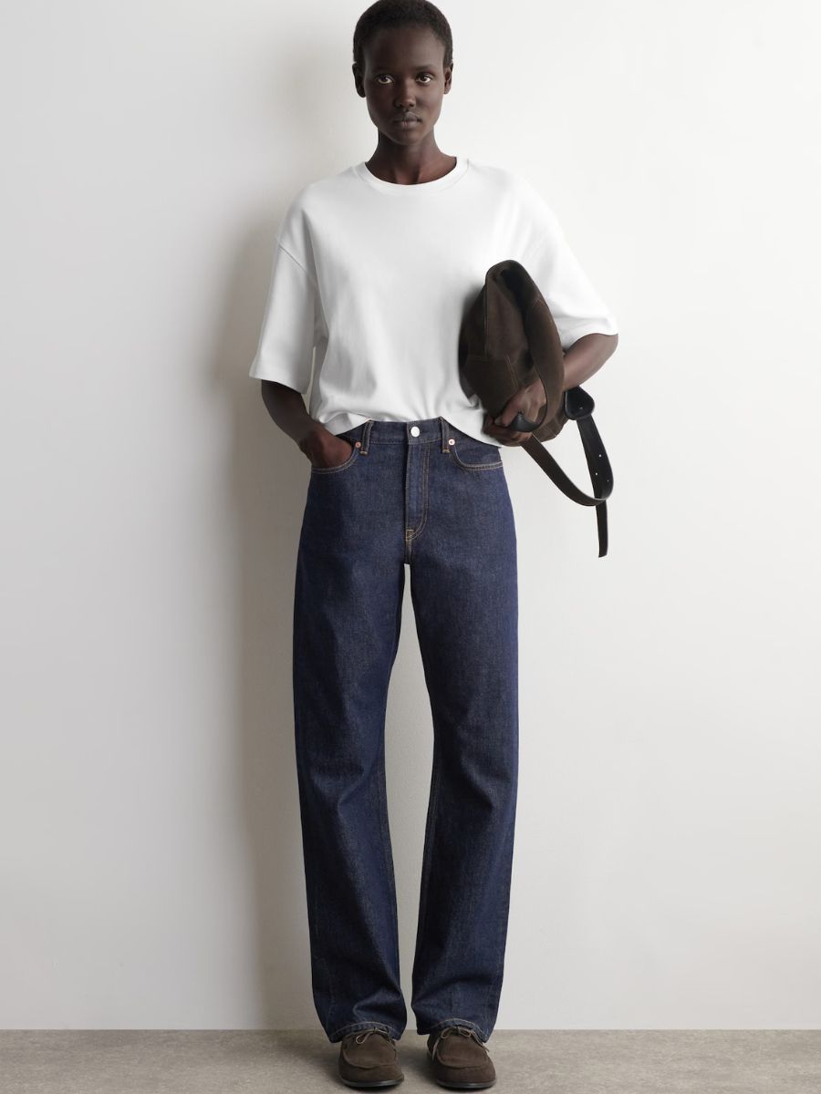 For spring, there is a palpable nod to the catwalk in the just-dropped faux denim indigo trousers which are, in fact, made from silk. A haute take on jeans for those who live and die by elevated wardrobe essentials, these are a direct nod to Chanel’s Métiers d’art 2026 runway collection which experimented with similar jeans-alternatives. Much like the Chanel iterations, these could work as the ‘cocktail trousers’ of your denim wardrobe. In terms of actual denim, the Chord straight-leg jeans are a good alternative for those waiting on a restock of the brand’s Column straight-leg style (which is still sold out in the coveted Chalk shade).