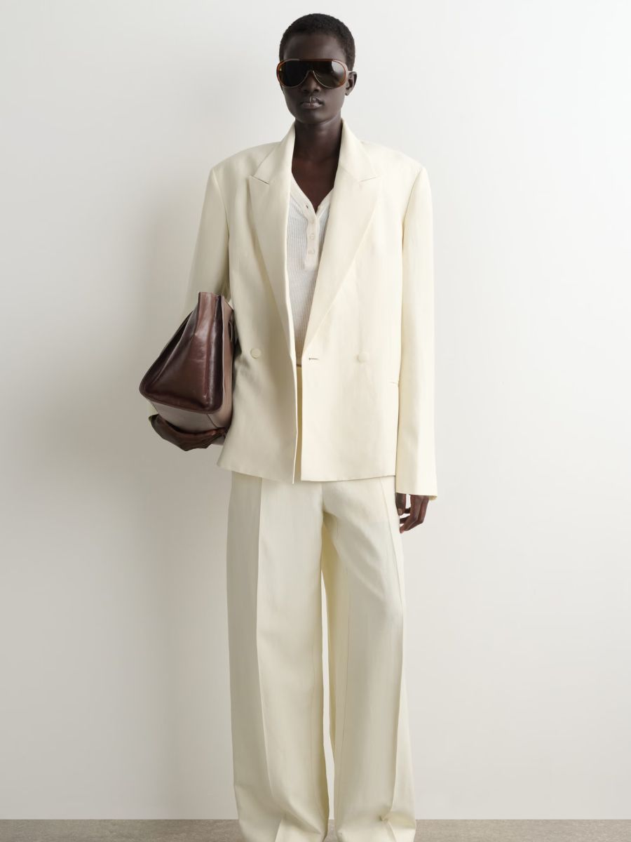 Ecru linen-blend tuxedo blazer, €179, at COS.
