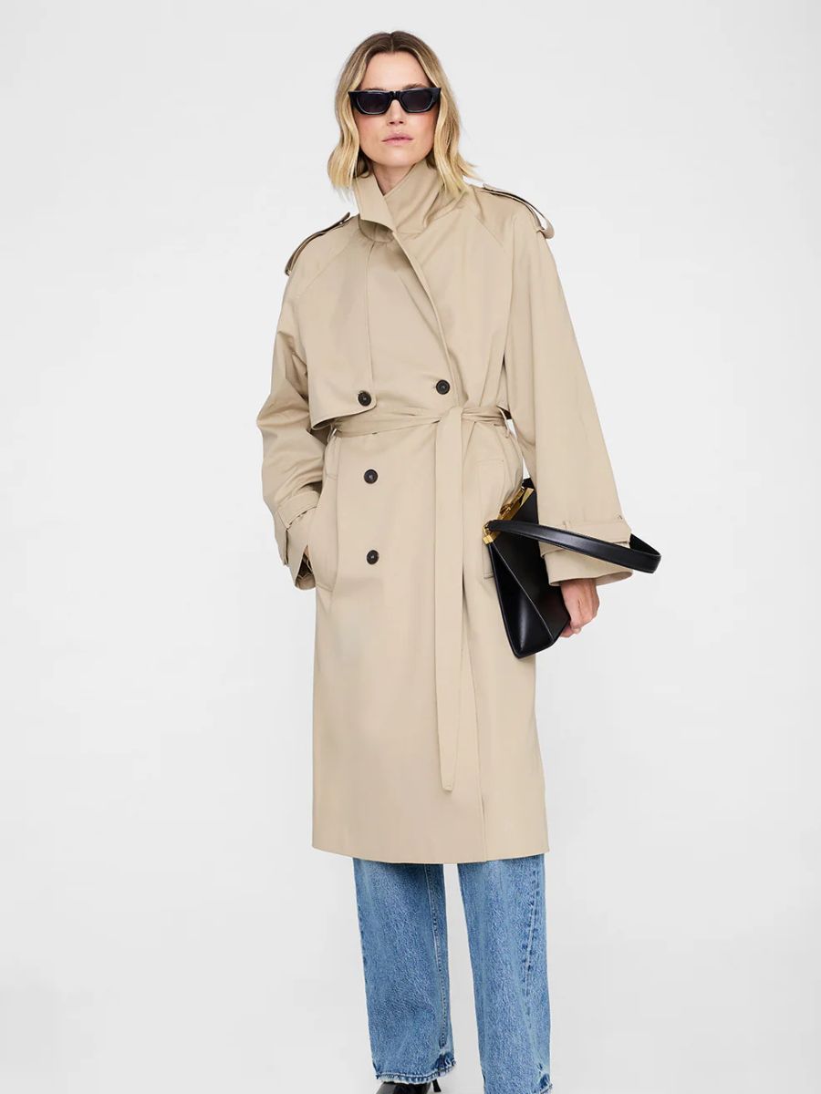 As classic trench coats go, this maxi style by Anine Bing nods to tradition but also has an edge. Pair yours with an elongated east-west bag or a ladylike top handle style. Beige Rickie longline trench, €700; www.aninebing.com.