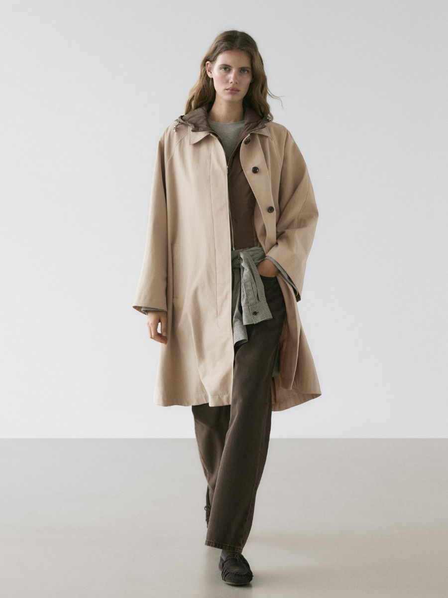In search of a hard-working mid-season buy? This trench coat with an inbuilt hood from Massimo Dutti is the one. Beige trench coat with hood, €190, at Massimo Dutti.