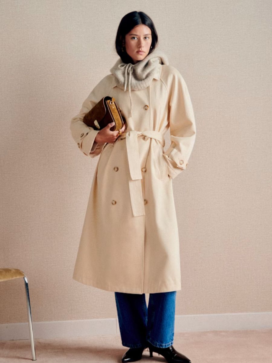 The pale colour of this Sézane trench is a refreshing change from classic camel. Light beige Pierce coat, €265; www.sezane.com.