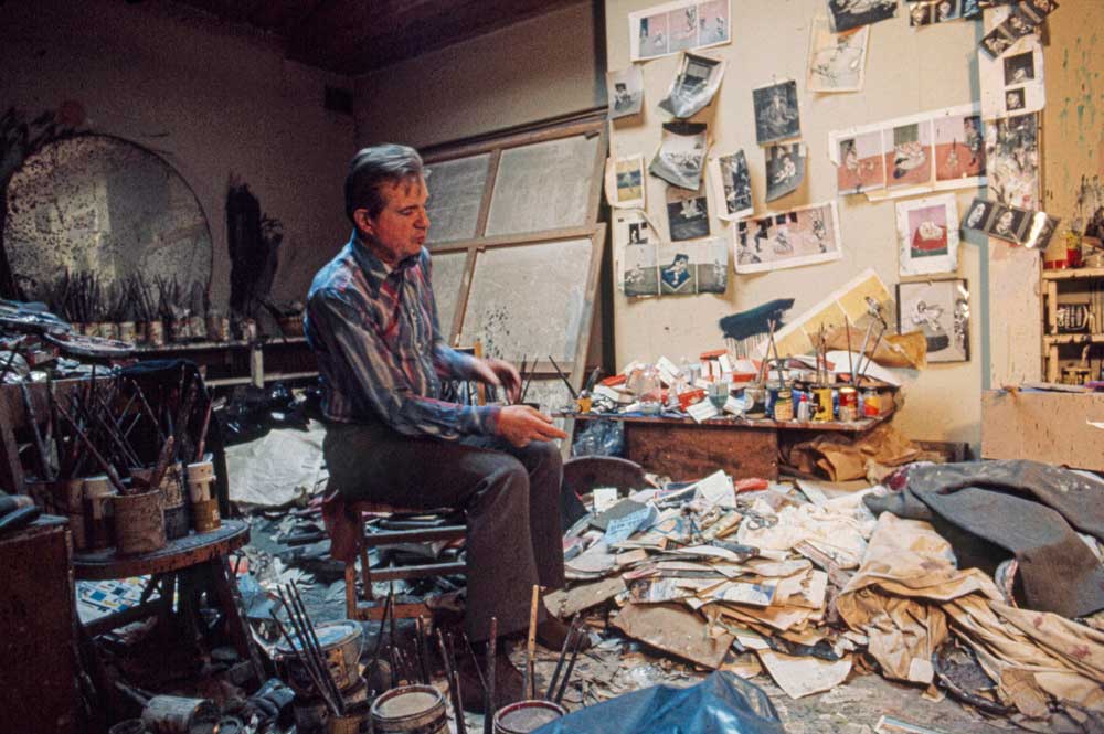 Photograph via FRANCIS BACON 1974 / MICHAEL HOLTZ/ALAMY / ARTWORK. Francis Bacon lived and worked in chaos: why did he not show it in what he wore? Here’s a photograph of Bacon in his South Kensington studio in 1974. Once more, spotless clothing.