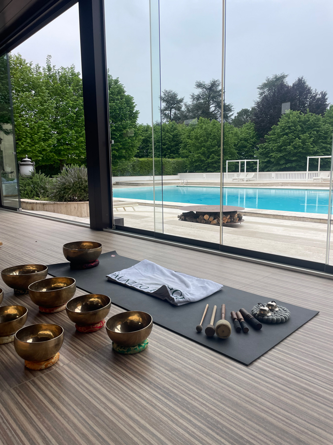 My favourite experience was Paolo’s “meditation session”, which turns out to be a group sauna and soundbath experience. Paolo, topless with a towel round his waist, dark-rimmed glasses in place, throws ice balls infused with essential oils onto the sauna and proceeds to waft a towel around in matador fashion, wafting the warm fragrant air at us. To the soundtrack of The Script. Since we’ve only heard classical music (restaurant) and spa music (everywhere else) for days, the music is a bit of shock. When he starts to chuck bits of ice at us all, we all start laughing – it’s fantastically eccentric and hilarious, yet also strangely moving (things do feel different when you’re in an intense caffeine and sugar deficit).