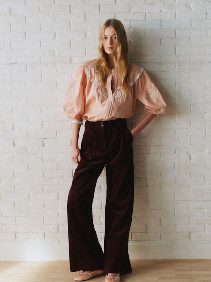 Pastel pink Orla embroidered cotton shirt, Sézane x Sea New York, €145; www.sezane.com.