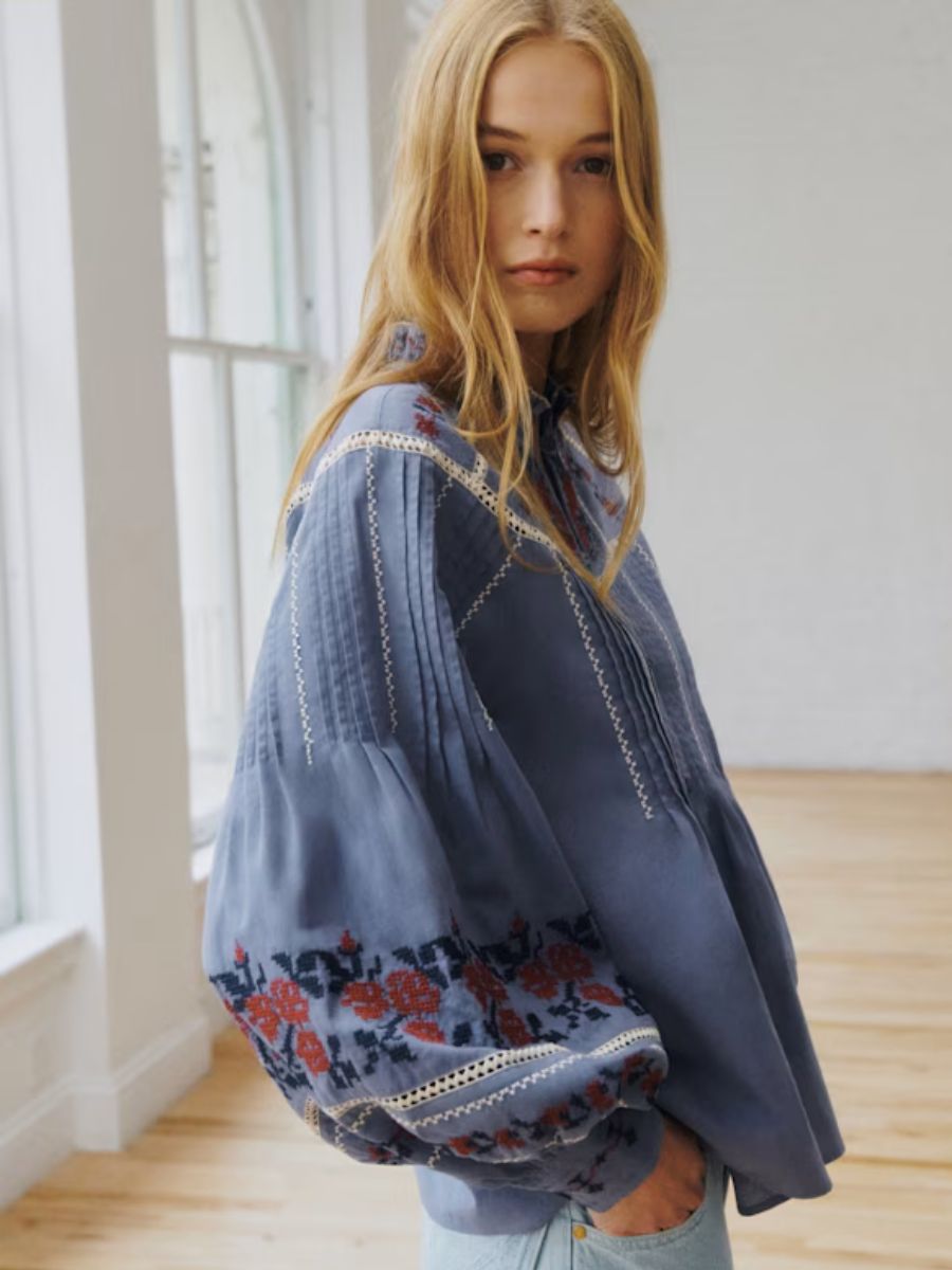 Which are the most covetable buys from this Sézane x Sea New York instalment? By far, the more streamlined, less busy pieces. The Solya ecru embroidered skirt looks particularly expensive – and, for €180, it is well-priced – while the Hella ecru embroidered blouse – which comes in at €150 – is the kind of piece you will see every style influencer worth their salt wearing at some beachy, sun-dappled destination come summertime (paired with vintage Levi’s or boyfriend jorts, of course). Lastly, if you always feel the pull of a romantic blouse, the blue Eugenia blouse, with its voluminous sleeves, boasts a folksy kind of bohemia that will never date. Shop the pieces we rate from the hotly-anticipated collaboration below.