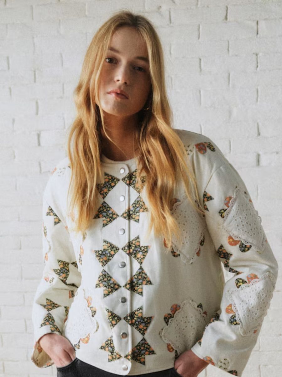White Dakoty signature cotton patchwork jacket, Sézane x Sea New York, €220; www.sezane.com.