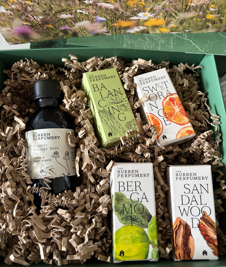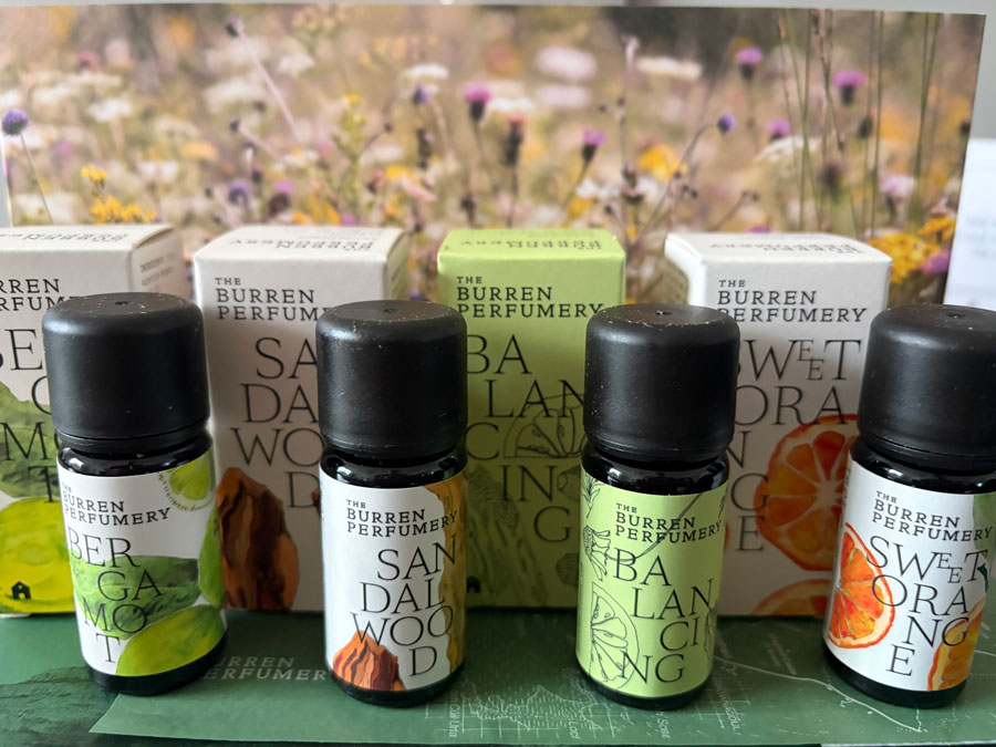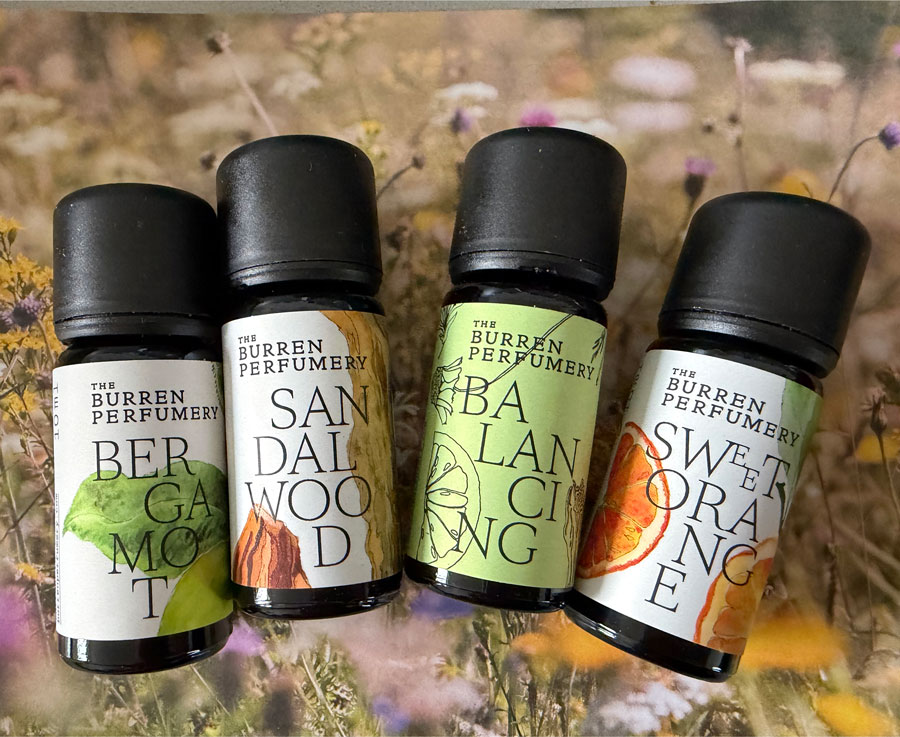 The Burren Perfumery has just launched a collection of organic and natural essential oils, featuring eleven pure essential oils, from sweet orange to rosemary, and three special house blends.