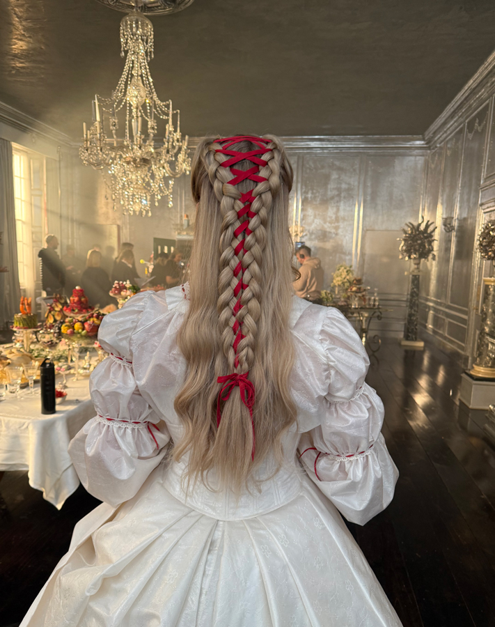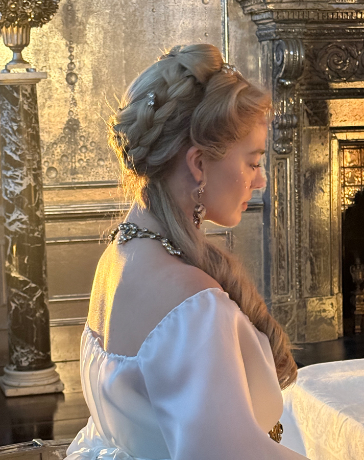 It is very rare to get the opportunity to do something like this. And I think when you work with Emerald Fennell, the opportunity is great to really give everything a sort of backstory, if you like, a reason and a connection with the environment. When you’re a hair and make-up designer on her films, you never feel that that what you’re doing is standing alone. It very much feels like it’s fully integrated with all the creative heads of departments, and everybody feeds off each other. Everybody’s very encouraging and I think that shows on screen.”