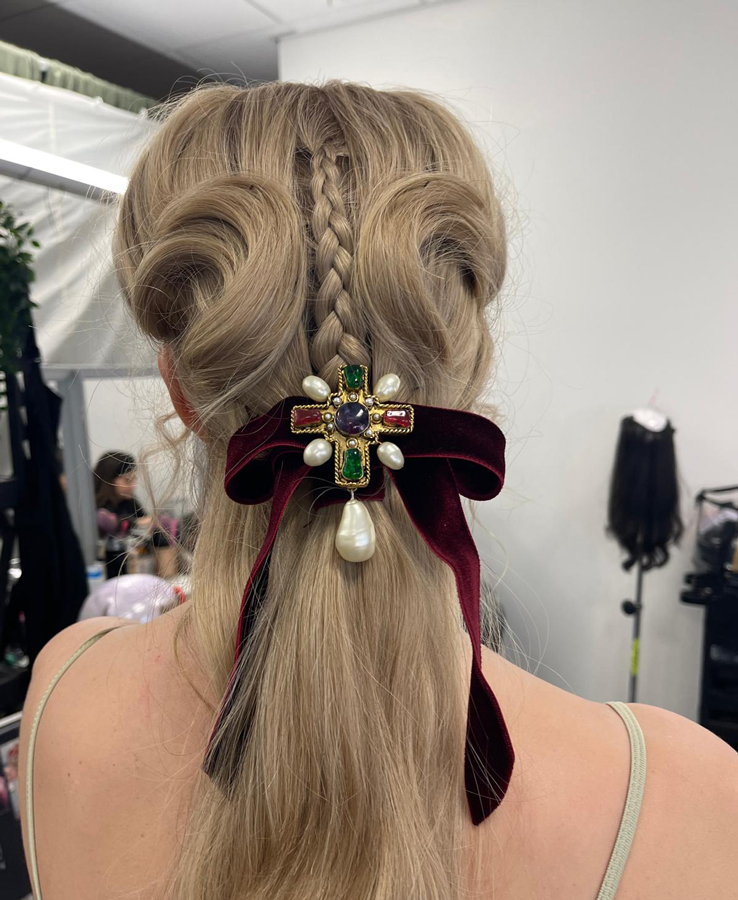 And of course, along with everything you do in hair and make-up design, you know, you have to be mindful of the clock. Because it’s not an infinite schedule – and filming days cost a lot of money. A big part of my job is not just to come up with the looks and manage my team, bringing all this to life, it’s also to make sure it’s happening on time. And within the filming day, we had lots of changes, with Margot’s hair for example. If you go into it blindly and spend hours, you’re holding up the unit. It’s about problem-solving: how can I deliver the most dramatic changes, the most wonderful looks, but within the time allowed? So you have to bring all this into the mix.”